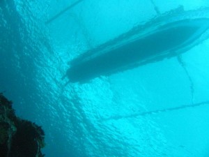 达到沉船的大致位置,船上的探测仪找到了悬壁的边缘,并证实靠海那边还有几千尺深。Mark和Will穿上他们的热带BCD,装上租来的呼吸器和80立方尺的铝制单气罐,然后迅速的复习了一下那个简单的潜水计划。