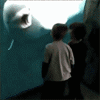 视频中,这头白鲸慢慢靠近玻璃,张开血盆大口,仿佛要吞噬掉所有的孩子们。而当小孩们尖叫着后退时,白鲸又悠哉悠哉地游开了。就这样,小朋友们“被吓”了一次又一次,白鲸也对这 个游戏乐此不疲。