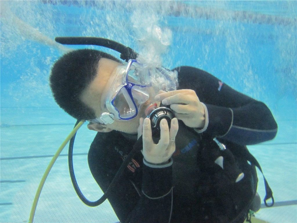 当你无法停止调节器的大量漏气,那你应该马上进行安全上升,准备回到水面上。大量漏气非常容易耗尽,切勿试图在水下修复!