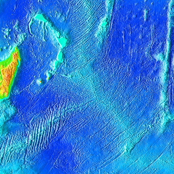 毛里求斯位于馬斯克林深海高原南侧边缘,上图11点位置可以看到很明显的海洋架(几乎在海面下)。下图是从国际空间站拍摄的图片,可以看到包括毛里求斯在内的好几个小岛。