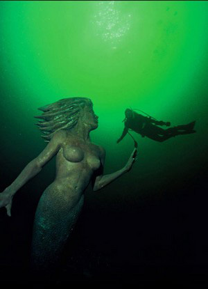 《海的女儿》童话故事浪漫唯美,人鱼公主凄美的爱情让人为之动容。在温哥华阳光海岸的水底,就有一条小美人鱼静候着潜水者的来访。这尊名为“翡翠公主”(Emerald Princess)美人鱼铜像由艺术家Simon Morris雕刻,她体态修长优美,长发飘扬,鱼尾碧绿,左手前伸,似期盼,又似挽留。“翡翠公主”于1989年定居萨特里湾(Saltery Bay)海底,这里由此得名“美人鱼湾”(Mermaid Cove), 她如今已经成为了阳光海岸潜水的“代言人”。