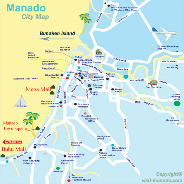 美娜多机场是印尼主要的旅游航空港之一,所以在印度尼西内都可以做飞机前往美娜多,美娜多机场门口便有前往各处的大巴和taxi,谈好价格后再上车,从机场去到市区打的大概需要10万印尼盾。