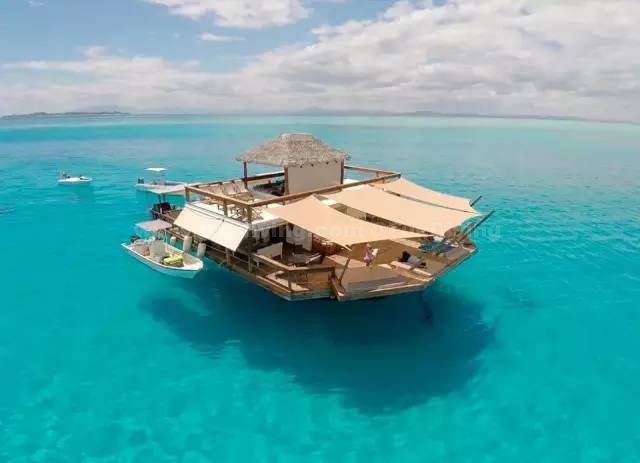 全球唯一的海上酒吧,四周被无边的惊艳海景环绕,没有喧嚣,没有人潮,你期不期待!这家酒吧叫CLOUD 9,是艘木造帆船,漂浮在斐济的马马努卡群岛附近,整个独特的场地遍布环绕声系统、阳光甲板、吊椅和日光椅,一边吃明火烤披萨,一边跟着电影在甲板上跳舞,周围是一望无际的翡翠色大海,在这种场景里什么烦恼都被抛到九霄云外啦!