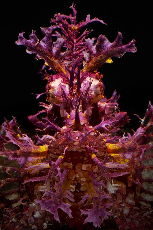 Sponge Crab with kelp used for camourflage Port Noarlunga, South Australia. Night dive - No editing/minor crop Olympus TG-4 with Ikelite housing: f/2.8, 1/60 sec, ISO-200 Intova 300 lumen focus light with ocular lens removed + Internal flash photo by Steve Jones