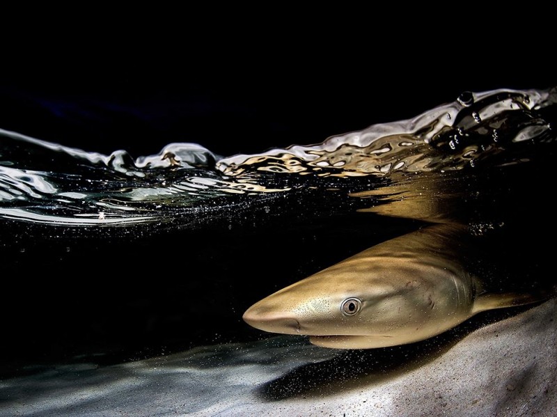 我清晰记得6年前,当我准备跳进黑夜中澳大利亚大堡礁第一次夜潜的场景。双泛光灯照亮了海平面上的一大片的海水,也照亮了食肉鱼的黑色剪影,让周围原本黑暗的区域看起来更黑暗。一想到要把自己交代给这未知的浩瀚无垠的海洋,就充满了恐慌,可是想到能够去探索黑夜中的海底世界,兴奋和期待又占了上风,就在五味杂陈的之季,发现自己已经淹没在午夜的深海之中。
