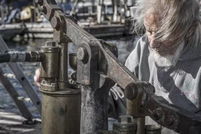 如果潜服连的泵停止工作,潜水服会因氧气不足而窒息死。所以Jacky Cauderay在每次下潜之前都会仔细检查潜水机器。