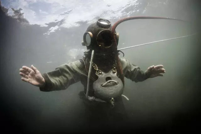瑞士前工业潜水员,现有职业为摄影师的Marc Henauer所拍摄的图片为我们记录了这次挑战:现代潜水员穿着历史上的铜质潜水服在日内瓦湖底的一次短暂体验。
