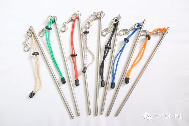 在水中手握一根短棒有很多好处,例如以短棒探索海床沙地或岩壁,比直接伸手触摸安全很多。最长见的作用,就是用金属材质的短棒敲击气瓶,在水中金属物的敲击声非常清晰,而且可传播至很远的距离。利用敲击气瓶的声音来呼唤潜伴的注意,是最常用的方式。缺点为:由于音波在水层中传递速度过快,人耳无法分辨音波的来源方向,所以当水层中有其他人也这么做时,往往分不清到底是谁在敲气瓶。
