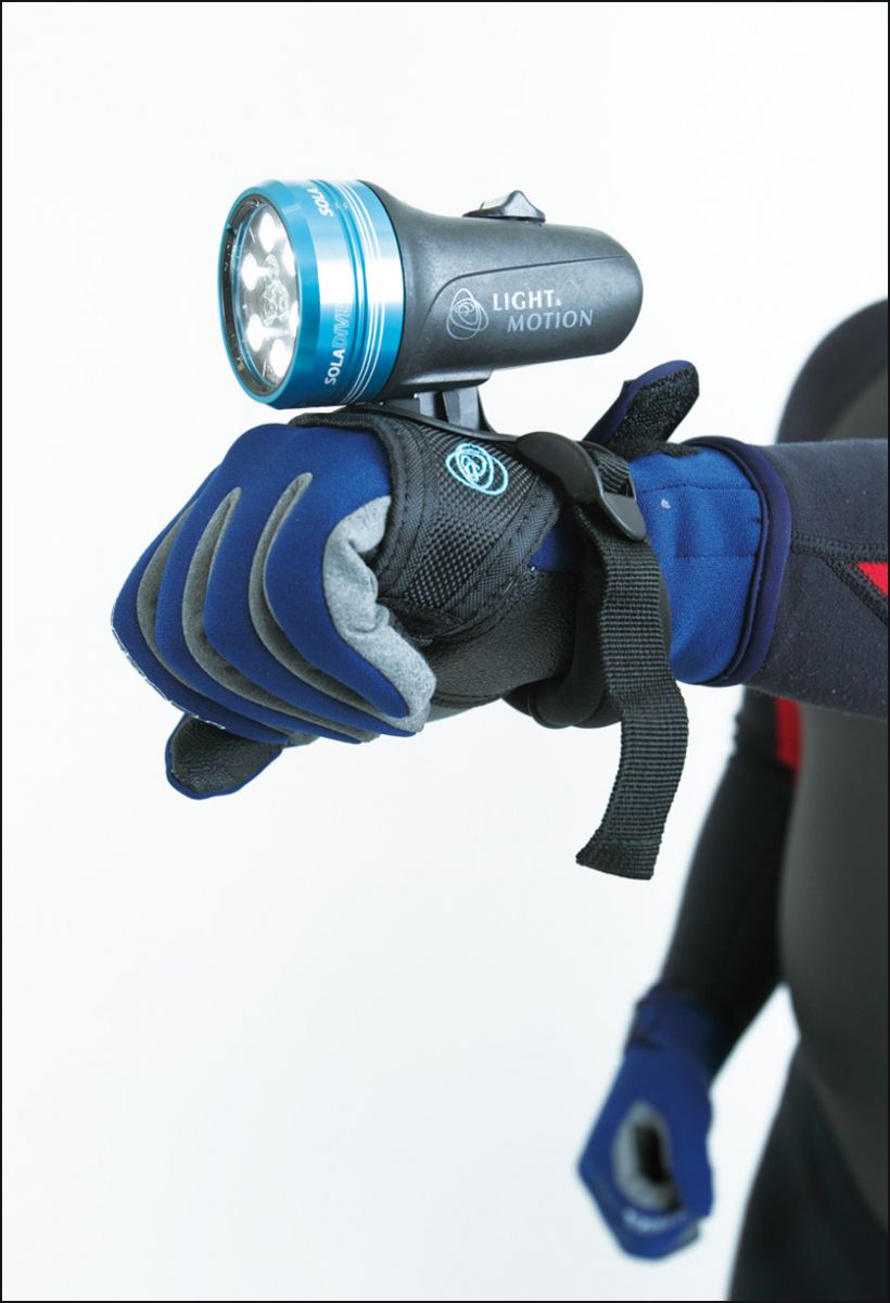水中照明除了夜潜之外,用于岩壁中的缝隙或洞穴内探照都非常需要。此外,使用探照器材也有利于水下的辨识,或是信号传达。水下照明器材有很多种,一般以携带小型手电筒最实用,也有专业的水中探照灯可固定在手腕上,由于重量轻,也不影响活动,是非常有用的设计。