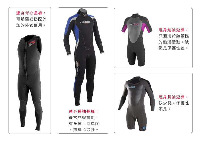 一、防寒衣分为湿式防寒衣及乾式防寒衣两大类: