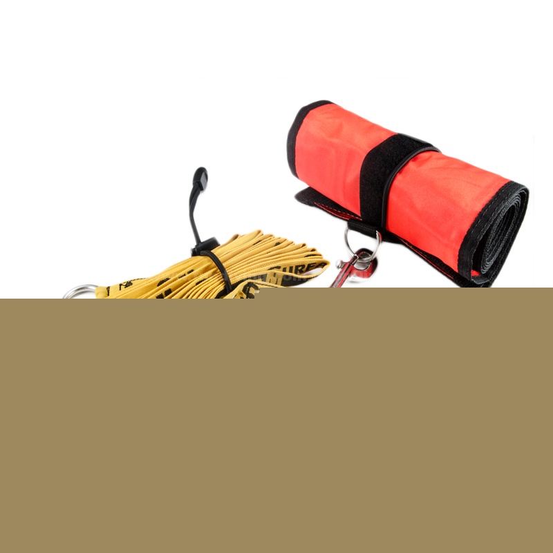 这款象拔绳底部的O型环负浮力与充有气体的象拔正浮力相抵,形成中性浮力。充气完成,可以完全释放双手,让象拔自行漂到水面,慢慢整理好备用二级头再伸手抓回绳子,告别手忙脚乱的狼狈。更不会在没有参照物的大蓝水里专心打象拔忘了控制深度,上上下下,延长减压时间。