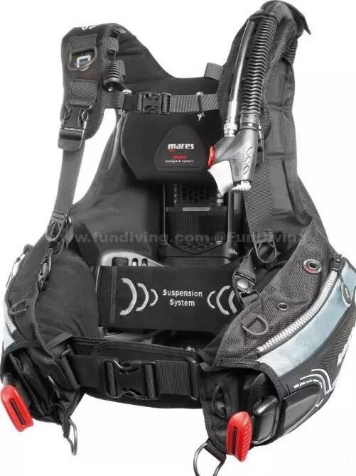 除此之外,Mares的充排气阀也采用了人体工程学的设计,让抓握更加舒适,充气或排气按钮也使用了鲜美的颜色区分,红色充气,灰色排气,对于水下的你,操作变得更加便捷。
