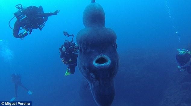 据《每日邮报》报道,葡萄牙海岸附近发现了高达5米的巨型翻车鱼,潜水员只有它的鱼鳍那么大。