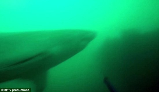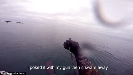 鲨鱼先是加速离开,补料,却又突然掉头朝男子袭来,这名男子不得不再次刺出捕鱼叉,鲨鱼终于游走了。