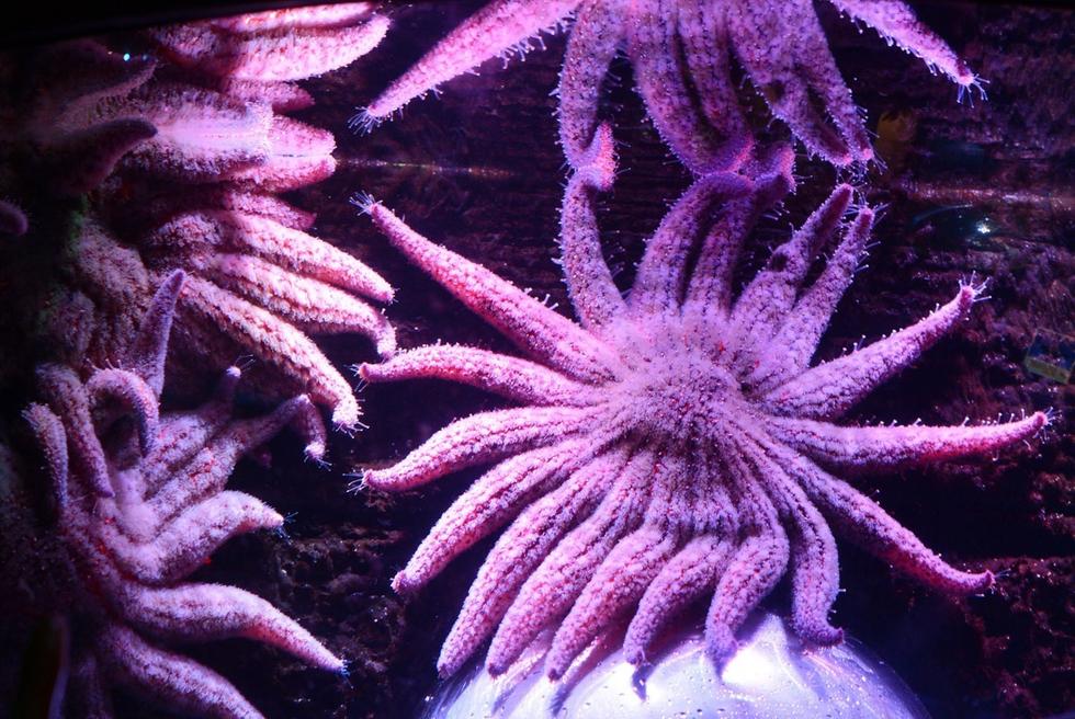 紫色的海星看起来毛茸茸的,像躺在水底伸着懒腰。