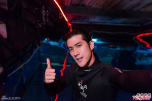 李治延穿上潜水衣与专业潜水员下水,零距离探索全球最壮观水上汇演《水舞间》的秘密。对首次潜入全球最大型水上汇演之剧院水底看骚,李治延坦言感 到雀跃万分,并举起母指赞好。