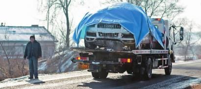 另一名目击者详细描述了拖车的过程:潜水员把钩子挂在了车头,钢丝绳另一端则拴在与拖车连在一起的另一辆越野车的绞盘上;两旁的牵引绳分别由几名年轻男子拽着,主要是控制车的方向。在车尾部和冰面之间,有人塞了一些木棍,先出水的是车尾部。此后是车头,然后整辆车平移到安全的冰面上,再拖到拖车上。整个过程用了4个多小时。