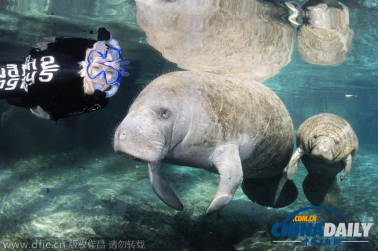 中国日报网9月25日电(欧叶)据当地时间25日报道,梅雷迪思和科拉贝尔赫姆在美国佛罗里达水晶河野生动物保护区潜水时遇到了一群海牛,海牛面对镜头一点也不羞涩,反而很积极,还忍不住追着美女,趁机献吻。