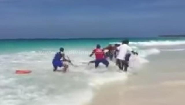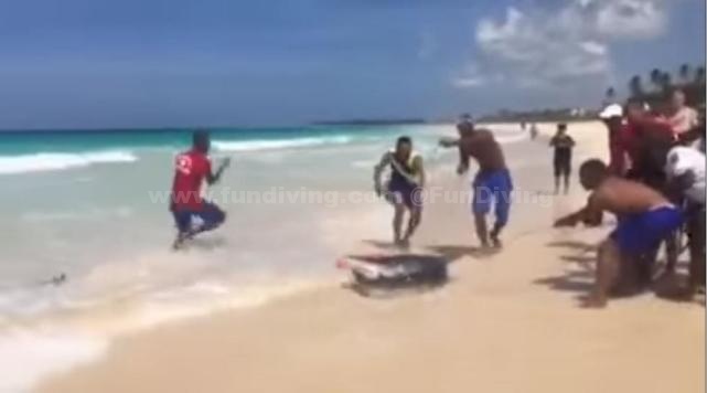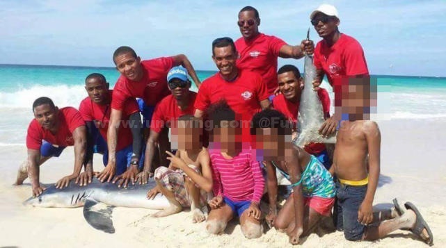 综合外媒报道,位于多米尼加共和国的蓬塔卡纳海滩近日出现一起不文明行为:一批在此游玩的观光客人与当地酒店保安在浅水中打捞一条蓝鲨,并将其强拖到岸上合影留念。最终,这条蓝鲨因缺水而死亡。事件曝光后,游客和保安们的行为受到了网友们的强烈谴责。涉事保安所在的酒店表示将对此行为绝不姑息,并将酌情给予当事人处分。