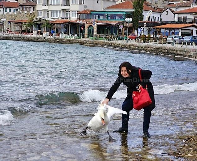 今年3月在马其顿西南部的奥赫里德湖,一名来自保加利亚的女游客为与天鹅自拍将其从湖中拖至岸边。女游客接近毫无防备的天鹅,拽住它的翅膀迫使其上岸,而对天鹅的挣扎视若无睹。在合照后,女游客自顾自的离开,而天鹅却失去知觉最终死亡。