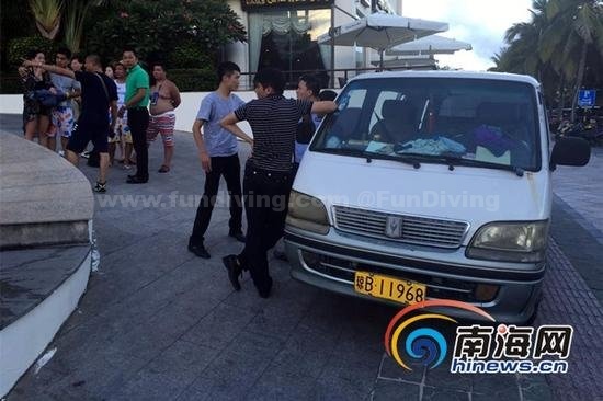 旅行社人员称,潜水就是在三亚海棠湾。6月21日一大早,3人便被一辆面包车送往一个人烟稀少的海滩。