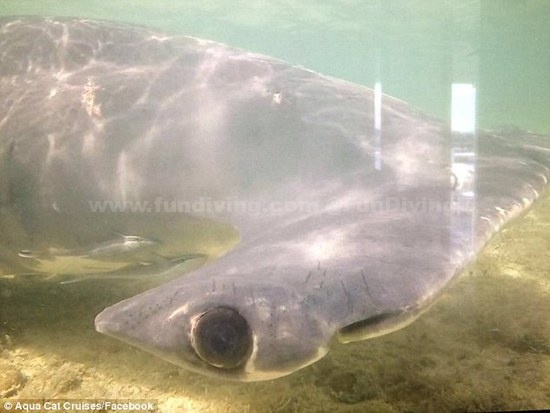 据英国《每日邮报》报道,巴哈马新普罗维登斯岛一座小船坞中惊现一条4米长的巨型双髻鲨。当时周围还有一群潜水者跟踪观察。