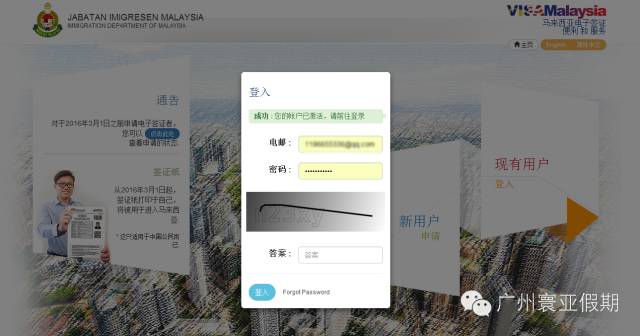 二、马来西亚电子签证(EVISA)申请演示: