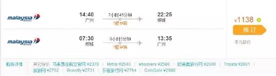 虽然是有中转,但是全程时间也不是特别长,可以接受,重点是这个1200不到的价格往返马来西亚,也属白菜价。