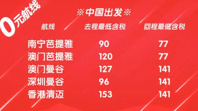◆【大促】0元航线多从珠三角出发,深圳/香港/澳门 芭提雅/曼谷/清迈