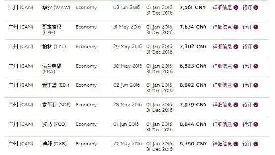 看完了香港的促销信息,我们可以看一下广州或者上海出发的优惠信息。目前在卡塔尔官网上看到的,广州直飞欧洲的还是要到五千多以上,所以还是结合自己的具体情况而选择航班。