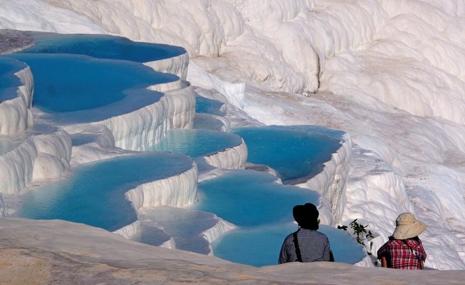 自远古时期,棉花堡就有这样的情景:蓝绿色的水流进白如棉花的阶梯形的石灰华(一种多孔碳酸钙)水池,碳酸钙的沉淀物使得这些温水池熠熠生辉。