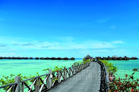 不知觉的45分钟航程,快艇抵达离岛卡帕莱,出来欢迎的是连片的水上屋和水下礁盘上旺盛的珊瑚。快艇还没有靠上度假村的码头,乐曲声已先幽幽入耳,几位捧着吉他、打着手鼓的马来帅哥赤脚站在码头的栈道上,咿咿呀呀地吟唱着充满热带风情的马来情歌,捧着冰毛巾和新鲜果汁的姑娘随后而至,于是,伴随着花环与冰饮的芬芳正式开启了诗巴丹假期。