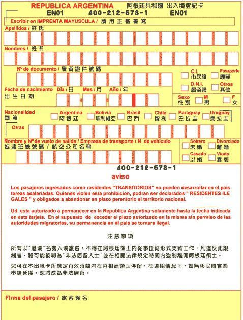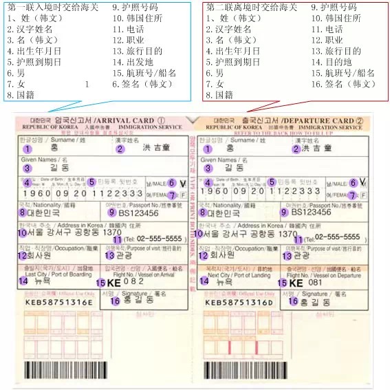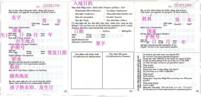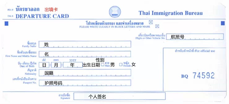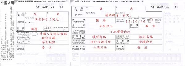 入境卡正面: