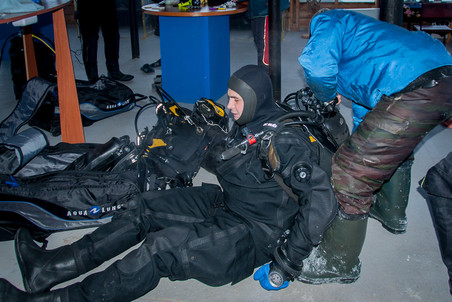 跟你想的不一样,在白海潜水可不是去了就能开搞。一切都得重新学习,才能取得冰下潜水证,甚至保持潜水服干燥,以及系统的泵气方式这种都得学,这都是为了不潜着潜着就头朝下脚朝上的冲出了水面…