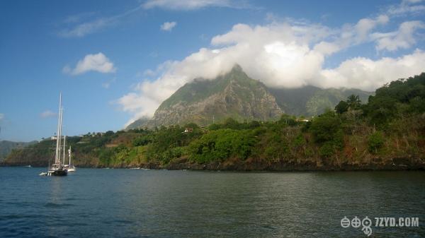这是非常著名的一个群岛(Galapagos),也是在太平洋上离巴拿马最近的一个岛屿,但却是厄瓜多尔所有,岛上风光如画,是帆船爱好者的天堂,上面植物保护很好,更值得关注的是千万年前火山喷发后留下千奇百怪的石头。由于晚上到达,我们无法靠岸,只有在锚地外停留一晚,第二再找岛内避风港湾停靠休整船只。