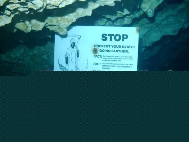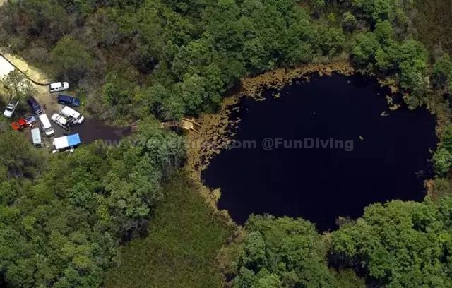此处的水异常清澈,潜水者甚至看起来像是漂浮在空中而非水中。这片水域有着古老历史,蕴藏着许多化石,但是水下通道繁多,像迷宫一样,因而增加了其危险程度。