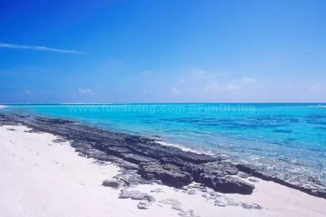 岛上全是细软的白色海沙,混着被吹打碎的红珊瑚粉末,水清沙幼。而这里的海水像钻石一样晶莹透亮,仅凭肉眼便能看到海底的景象。