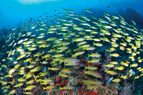 泰国斯米兰,国内许多潜水员会以它为船宿潜水旅行的一个起点。斯米兰国家公园算得上是泰国最好的船宿路线,这里会遇到连续成片数十个足球场那么大的软珊瑚群&海葵群,逗比的海鳗、可爱的小丑鱼、奇形怪状的小生物栖息其中;海底花岗岩底层经过鬼斧神工版的雕刻,令人啧啧称奇;黄鲷鱼形成移动的河流,静静在你面前流淌;还会遇上温顺的巨人——鲸鲨!当然不能少了点缀在地平线上的美丽小岛和海滩了。